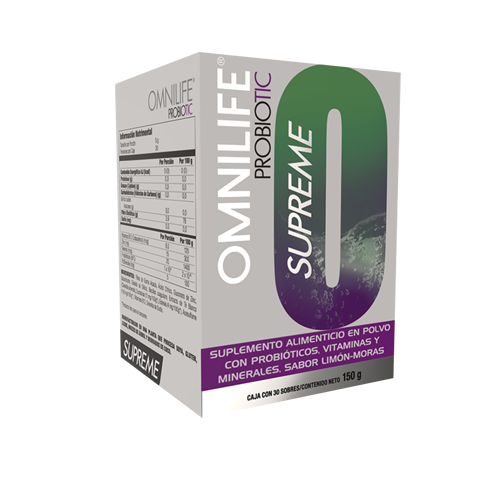 Mezcla en polvo, sabor limón-moras, que contiene probióticos (bacillus coagulans), extracto de té blanco, fibra, vitamina B12 y zinc. Con estevia, endulzante de origen natural.